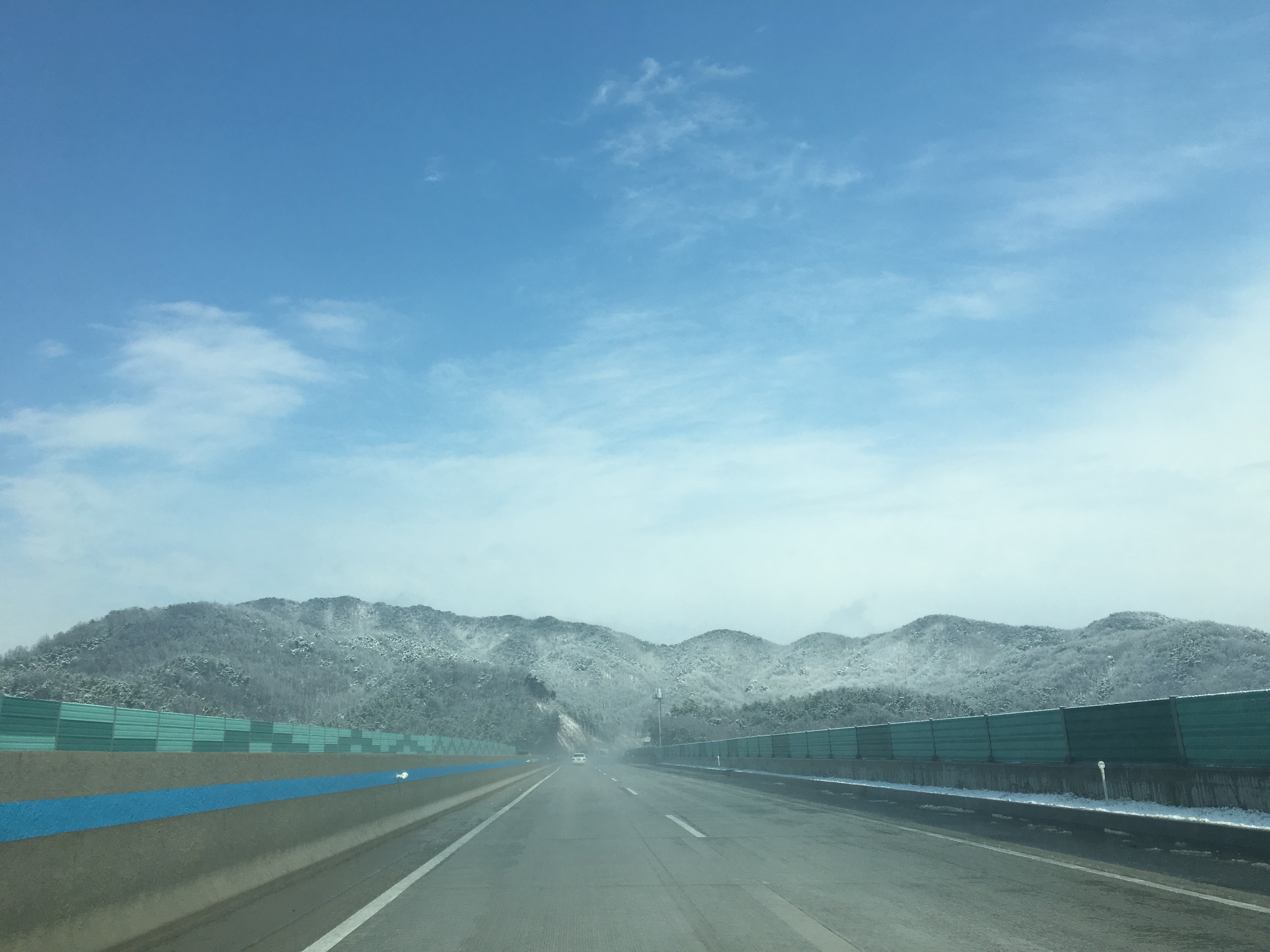가는길에 눈이 내리기 시작하더니 경치가 좋아짐.