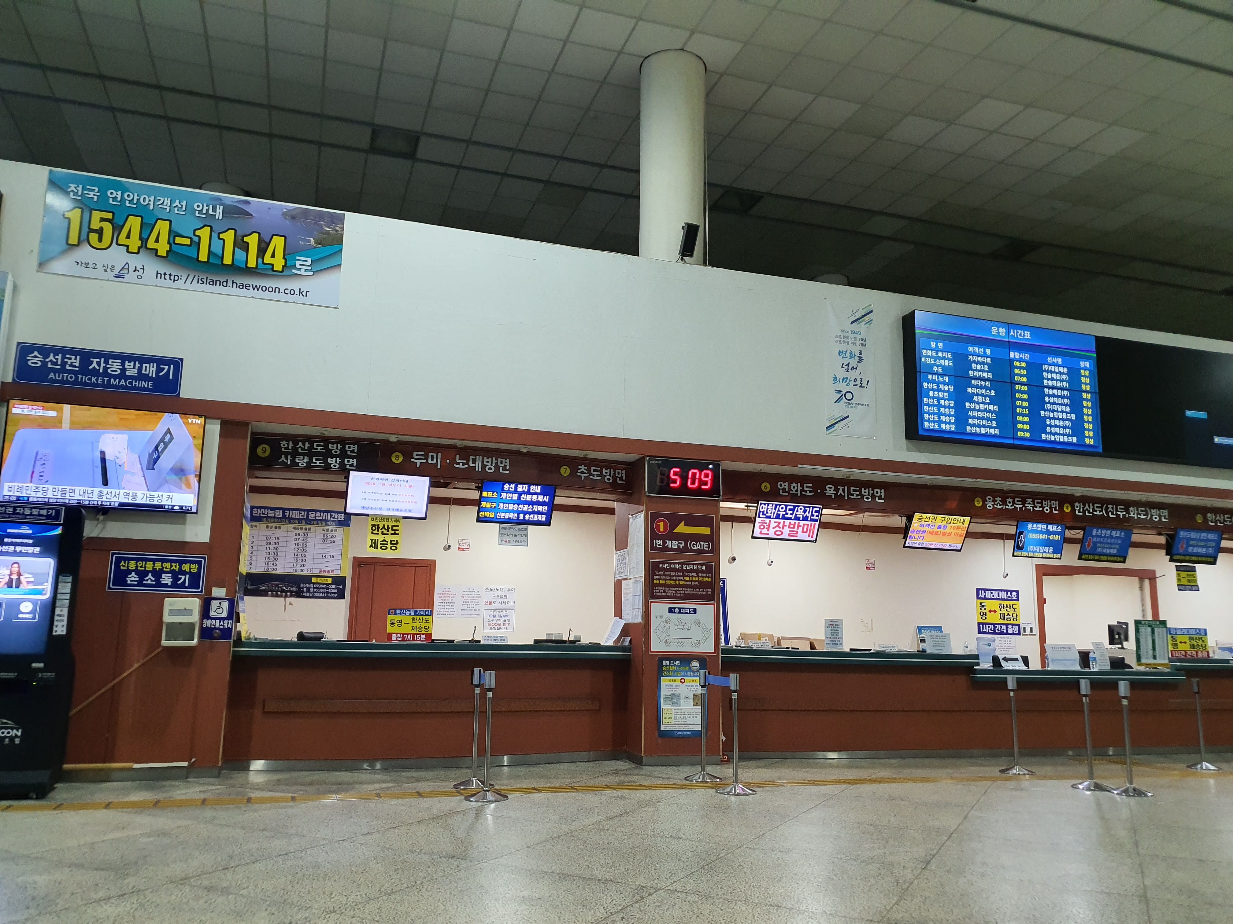 든든하게 배를 채우고 나오니 새벽5시경이 되었다. 이때 통영 여객터미널 문을 열어줘서 안에서
