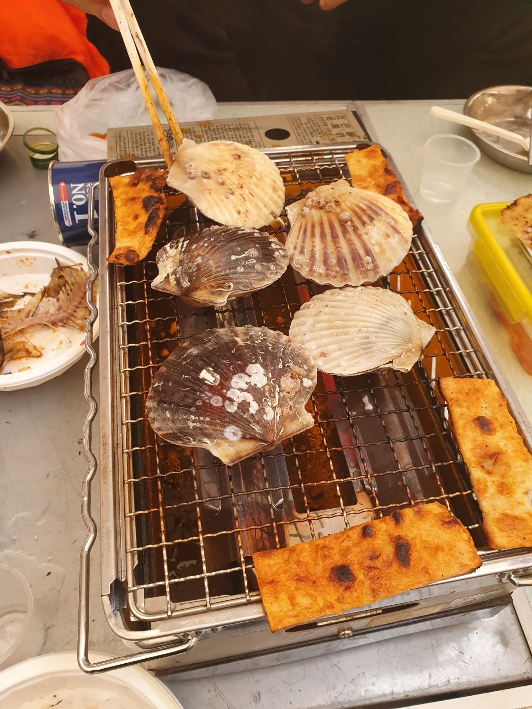 조개도 굽고 오뎅도 구워먹으니 맛났다.