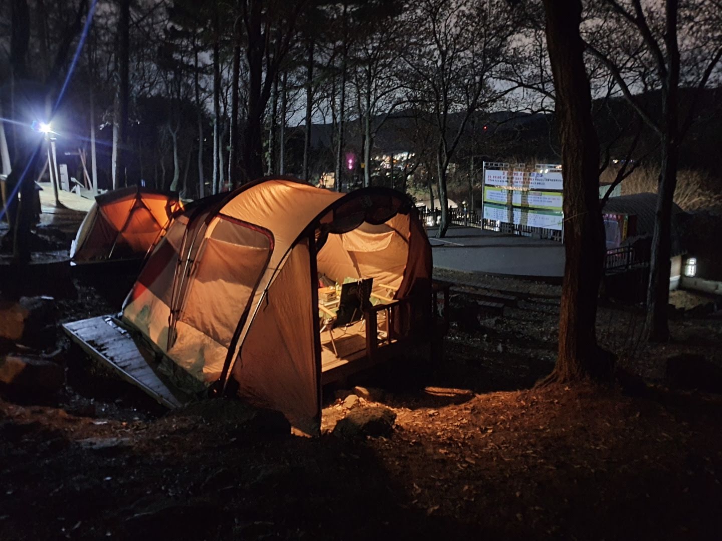 4.5*3.5 정도의 큰텐트라 이너텐트는 못치고 4*4데크에 쉘터모드로 겨우 쳤다 ㅎㅎ