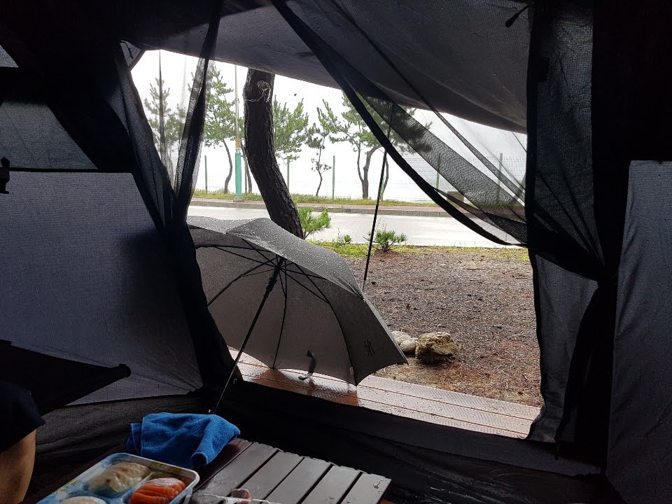 비바람에는 못쓸 텐트라고 판단. 싸구려 원터치 텐트는 형님이 버렸다. ㅎㅎㅎ