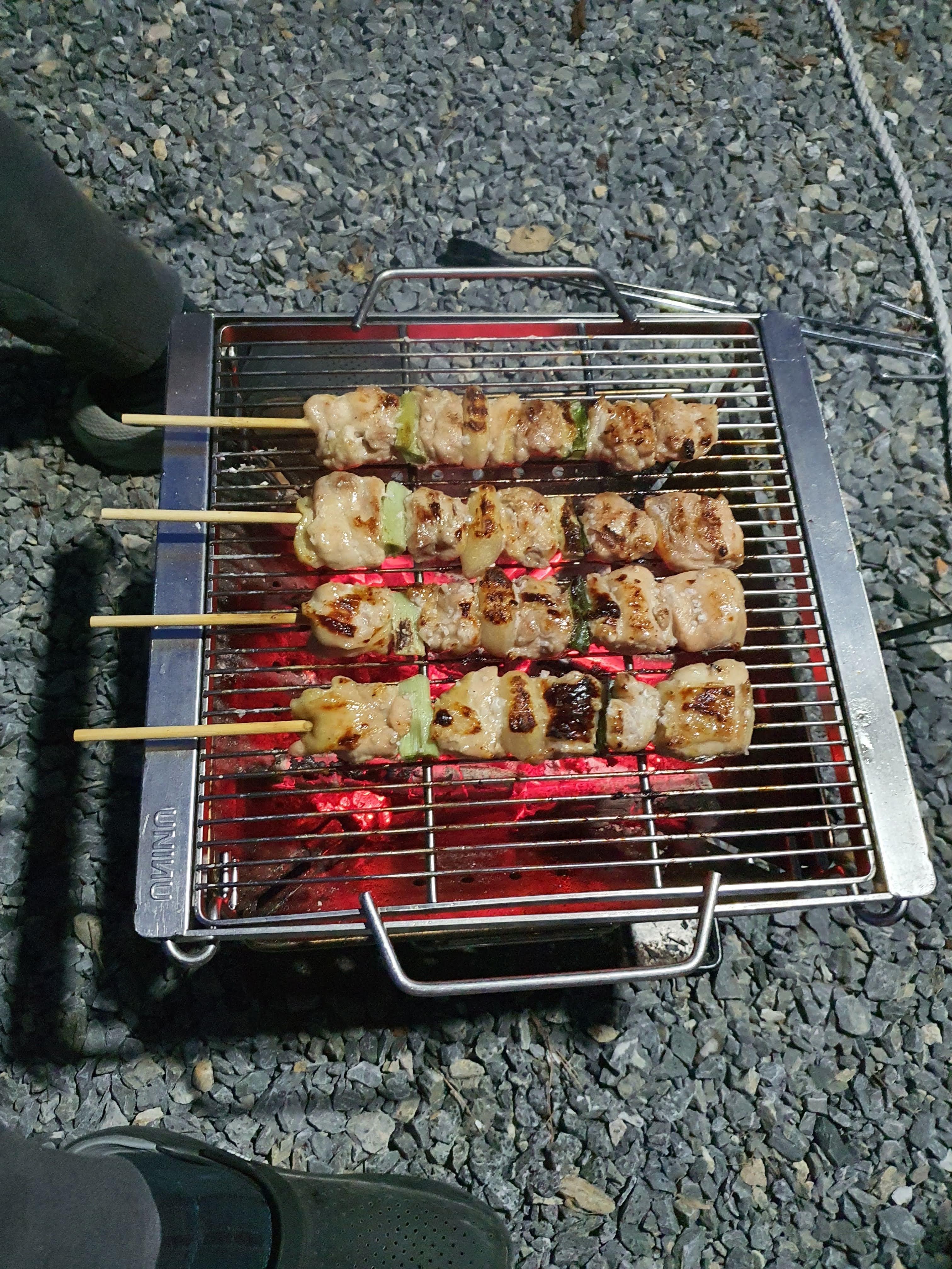 숯불 만들어서 고기도 구워먹고 닭꼬치도 구워먹고 이것저것 안주에